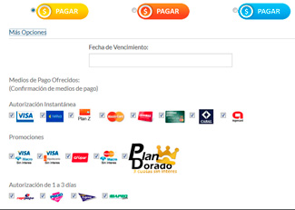 Medios de Pagos: Tendras la opción de dejar todos los medios de pagos adheridos o destildar el que no desees. Podras hacer lo mismo con los planes promocionales de cuotas Sin Interés.